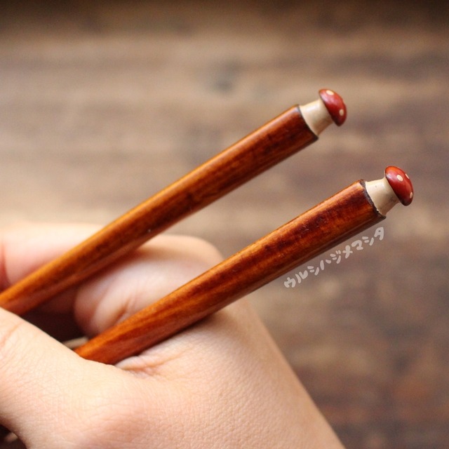 完売御礼:拭き漆の箸(きのこ)【23cm・大人用】/URUSHI CHOPSTICKS(MUSHROOM)