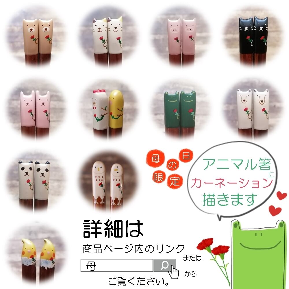 いつも『限定アニマル』とか『アニマル箸』と言っていますが…9年目になるとちょうどよい「アニマル」が思いつかず…今回はアニマルではない箸にしちゃいました。