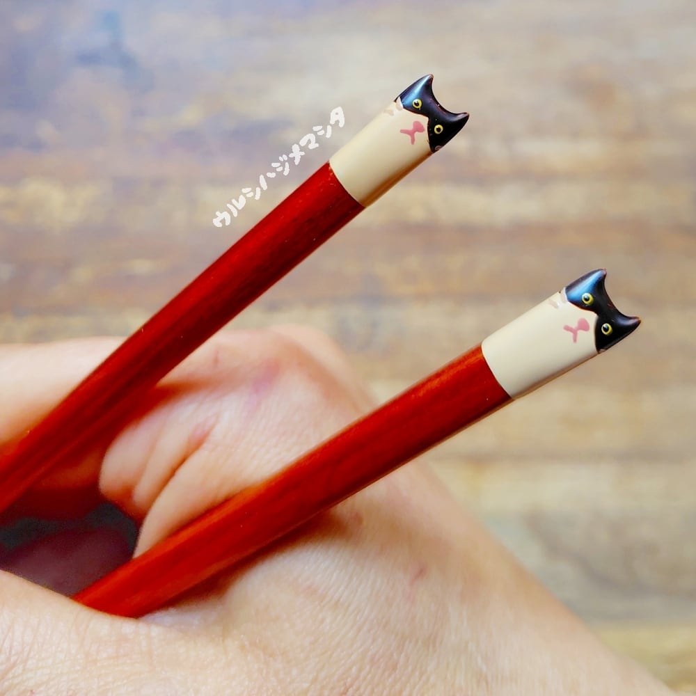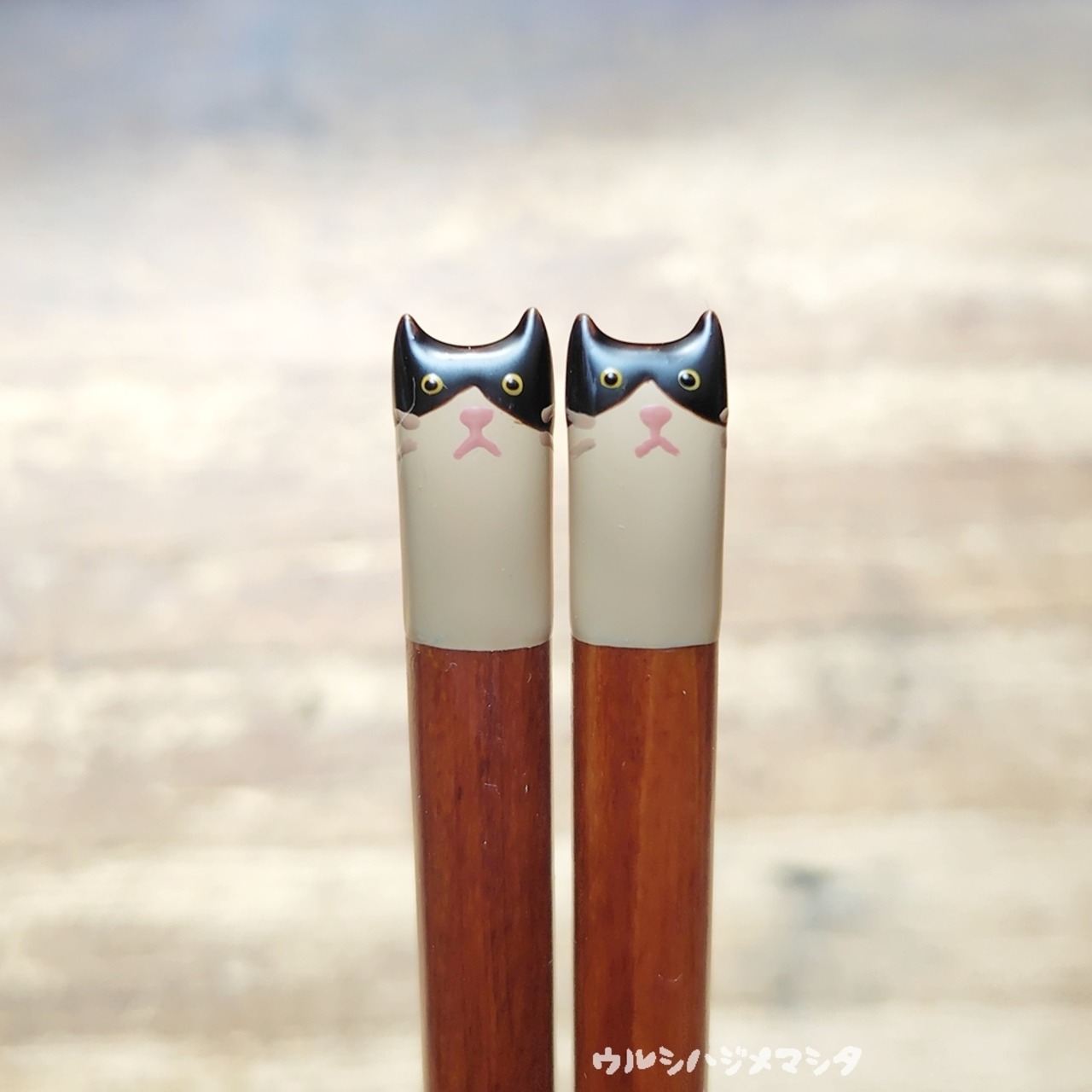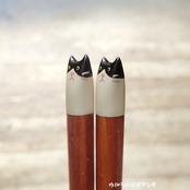 |猫の日2026年限定|拭き漆の箸(ハチワレ猫)